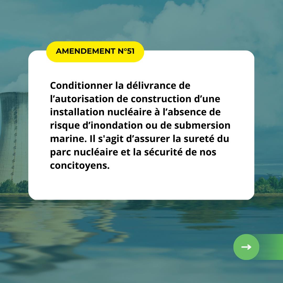 Ainsi, j’ai déposé 3 amendements pour empêcher l’installation de centrales nucléaires sur les zones littorales vulnérables aux inondations et aux submersions marines. L’amendement 52 a été adopté en séance. Il s’agit d’une belle avancée pour notre sécurité collective.